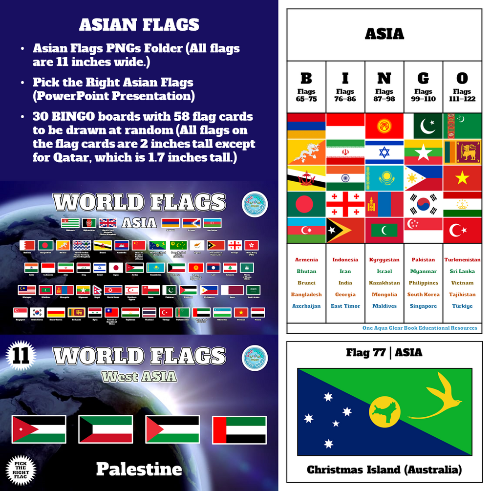 Asian Flags PNGs, PPT, Flash Cards, and Bingo Boards