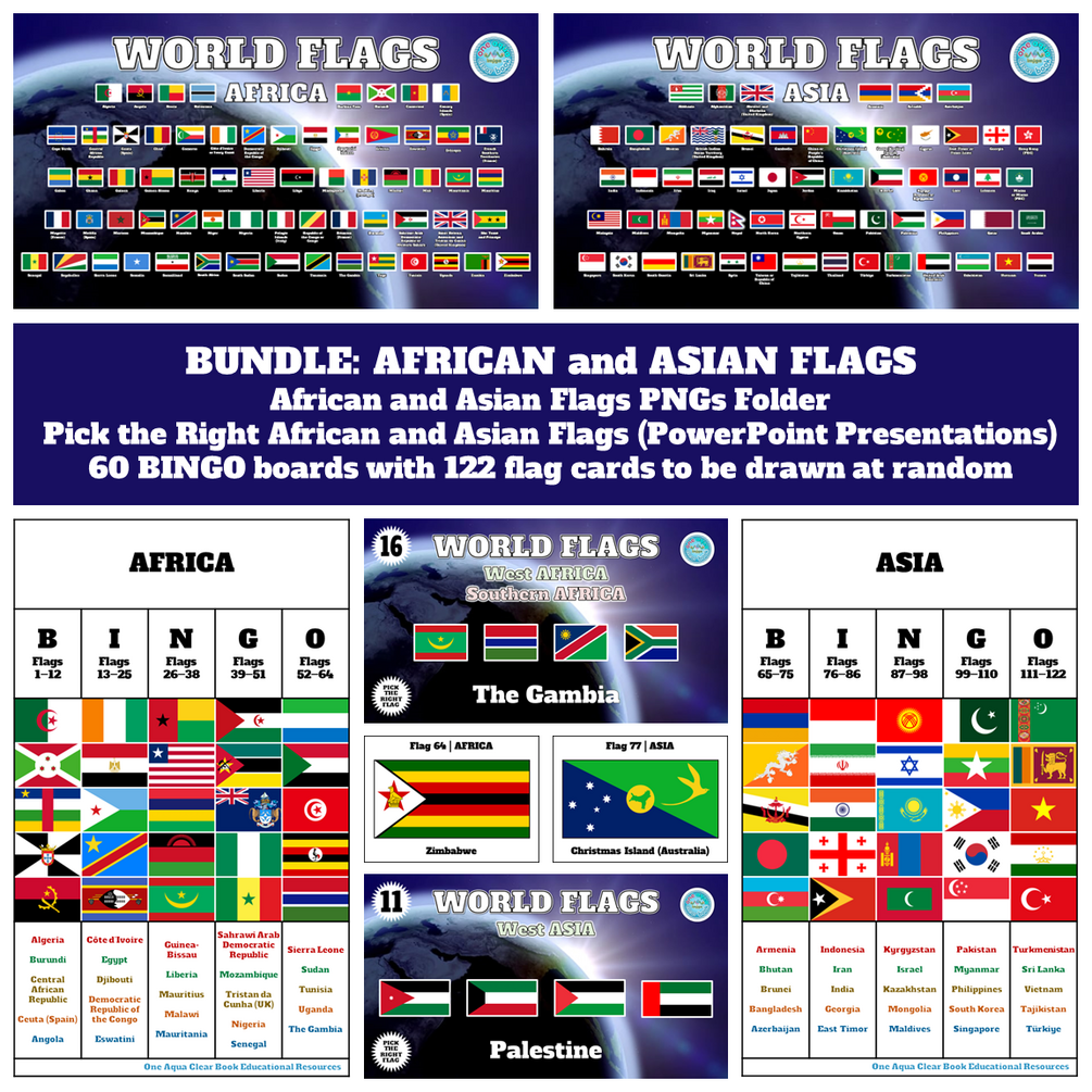 BUNDLE | African and Asian Flags PNGs, PowerPoints, Flash Cards, and Bingo Boards